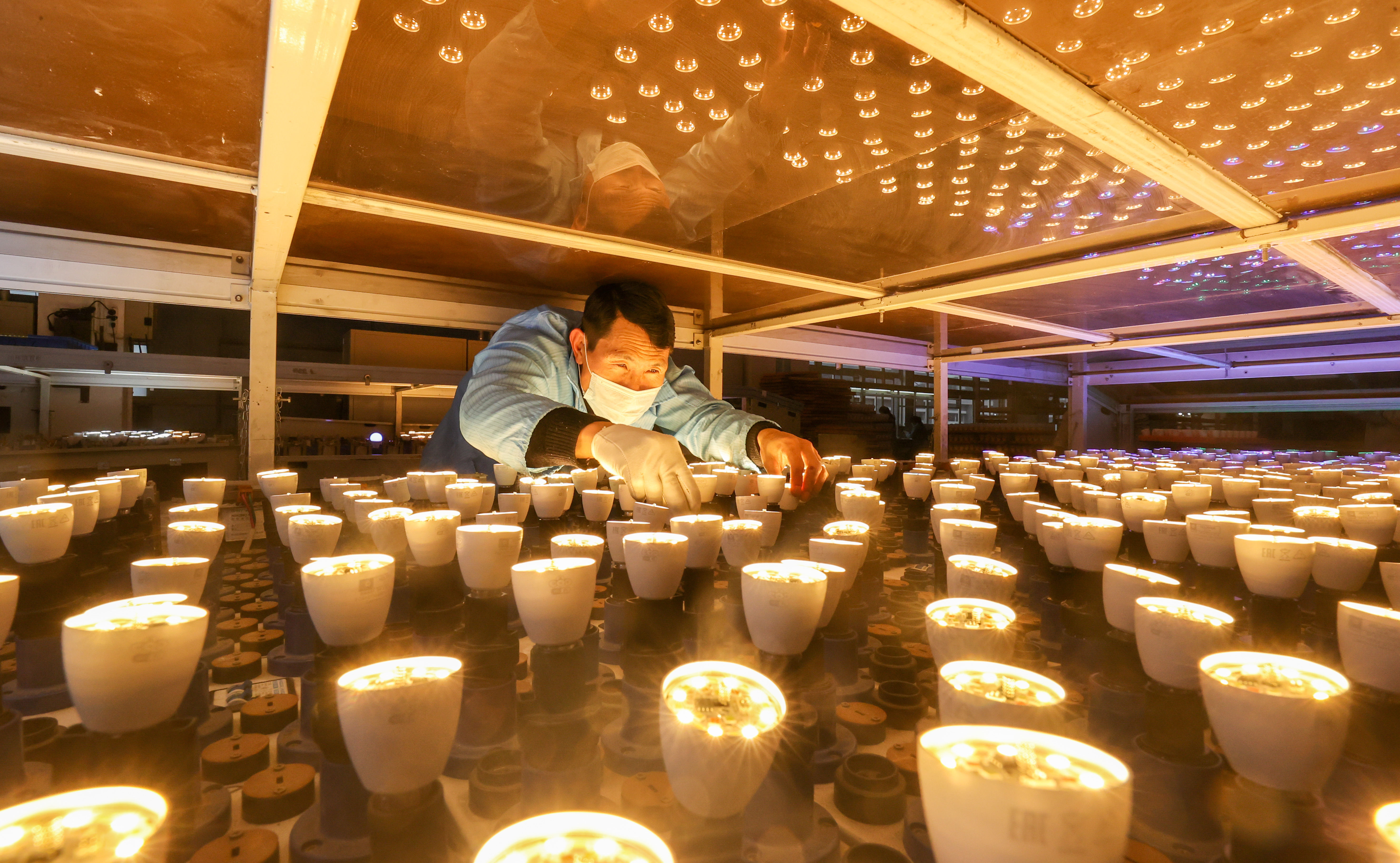 ↑2022年4月1日,在浙江省湖州市德清县洛舍镇东衡村钢琴小镇产业园一钢琴有限公司,技术人员在调试钢琴音色。CICPHOTO/王正 摄