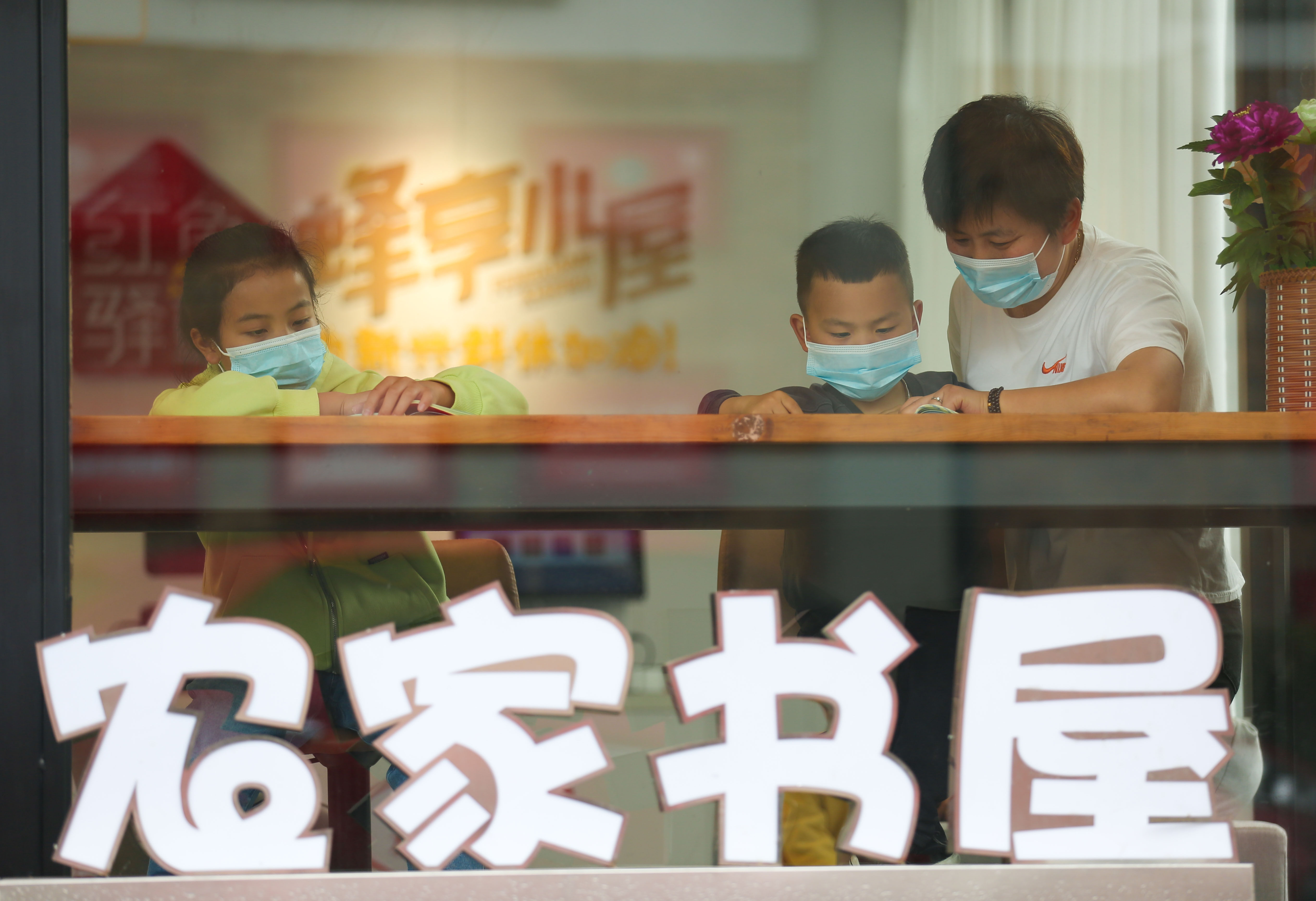 ↑2022年4月6日,浙江省湖州市德清县洛舍镇中心幼儿园,孩子在医务工作者指导下学习正确的佩戴口罩。CICPHOTO/王正 摄