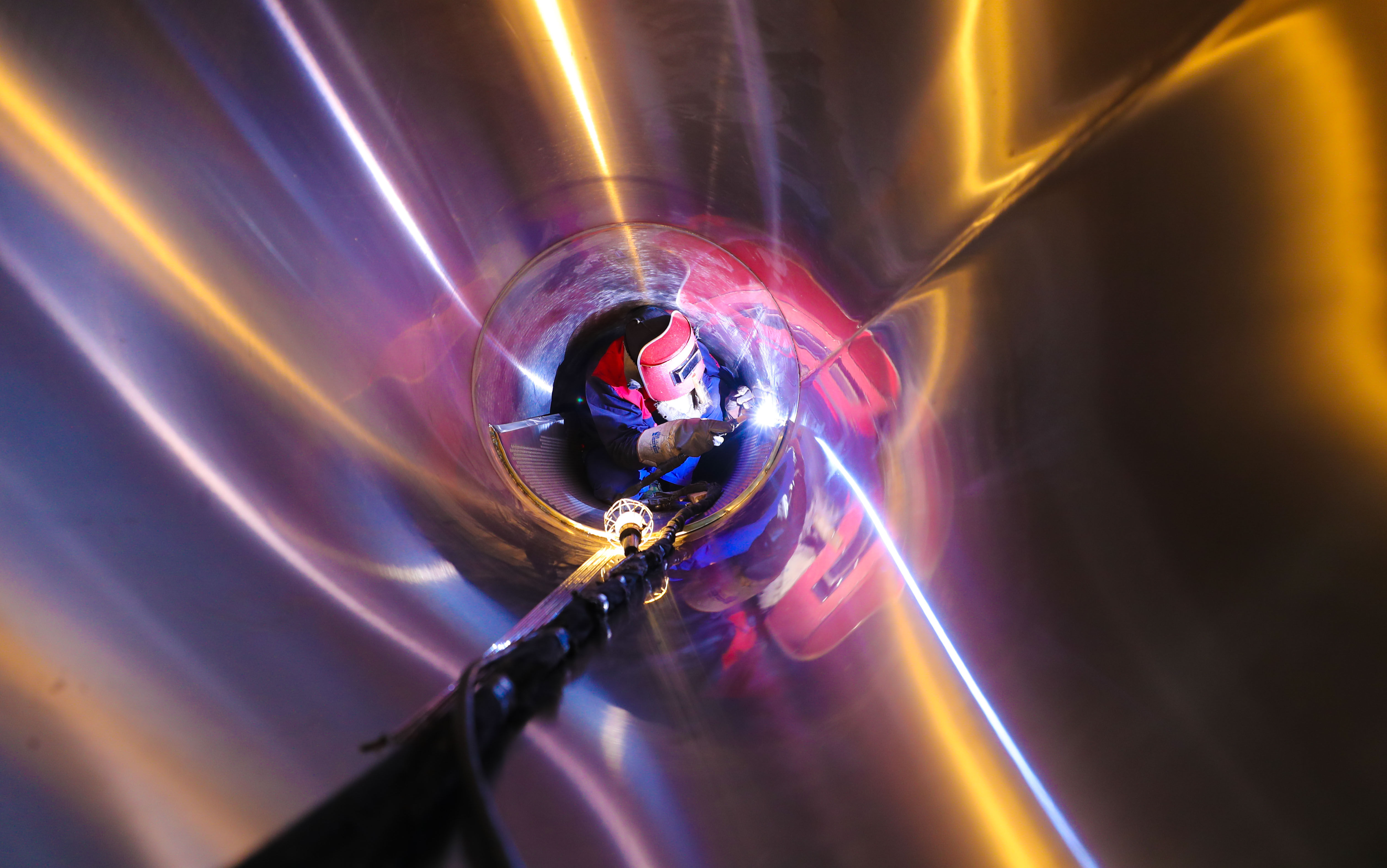 ↑2022年5月4日,在浙江省湖州市德清县新安镇的一工业科技股份有限公司生产车间,工人加紧赶制单晶硅炉订单。CICPHOTO/王树成 摄