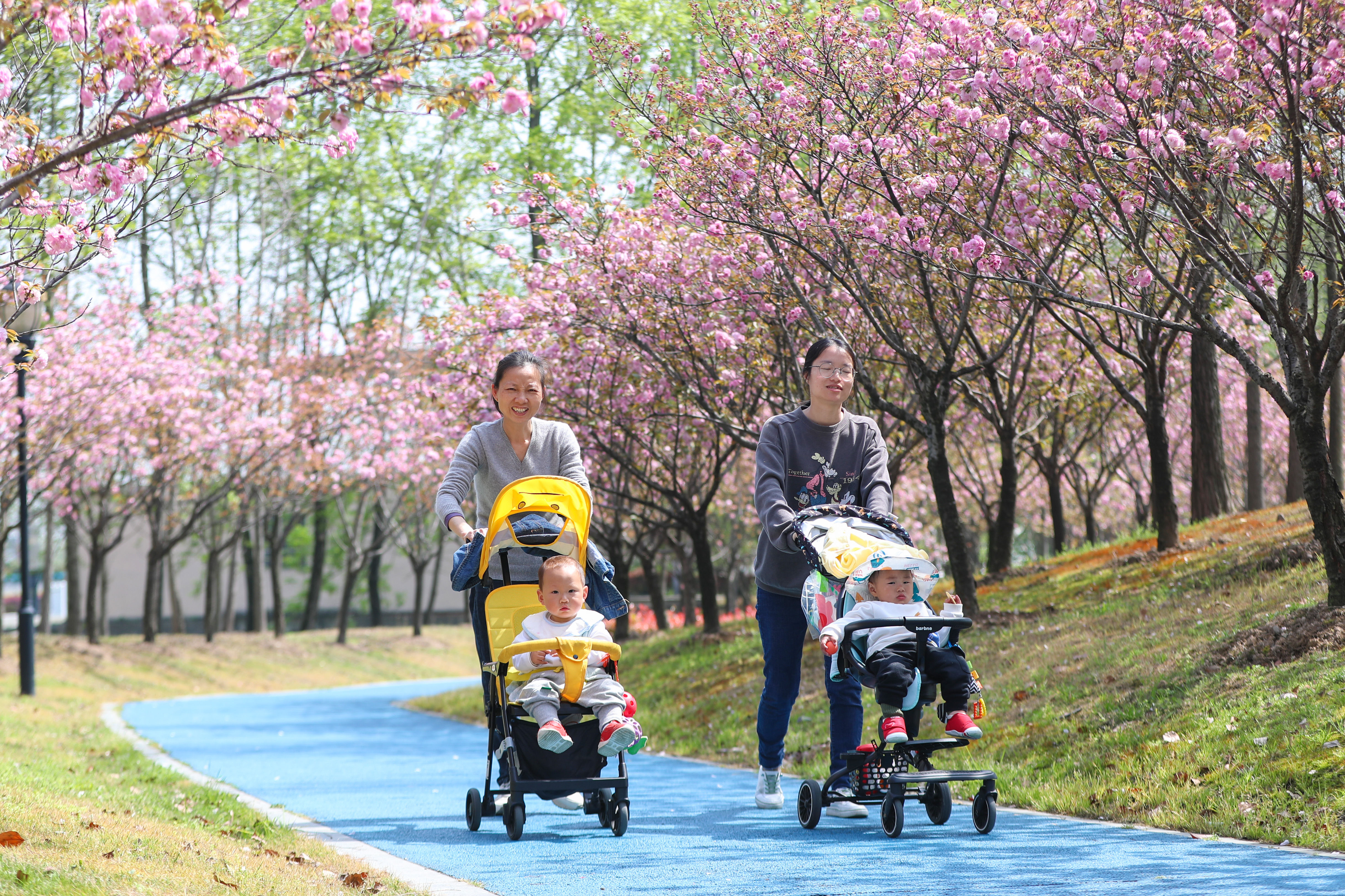 ↑2022年3月29日,在浙江省湖州市德清县武康街道英溪公园,市民在散步踏春,欣赏美景。CICPHOTO/蔡俊 摄